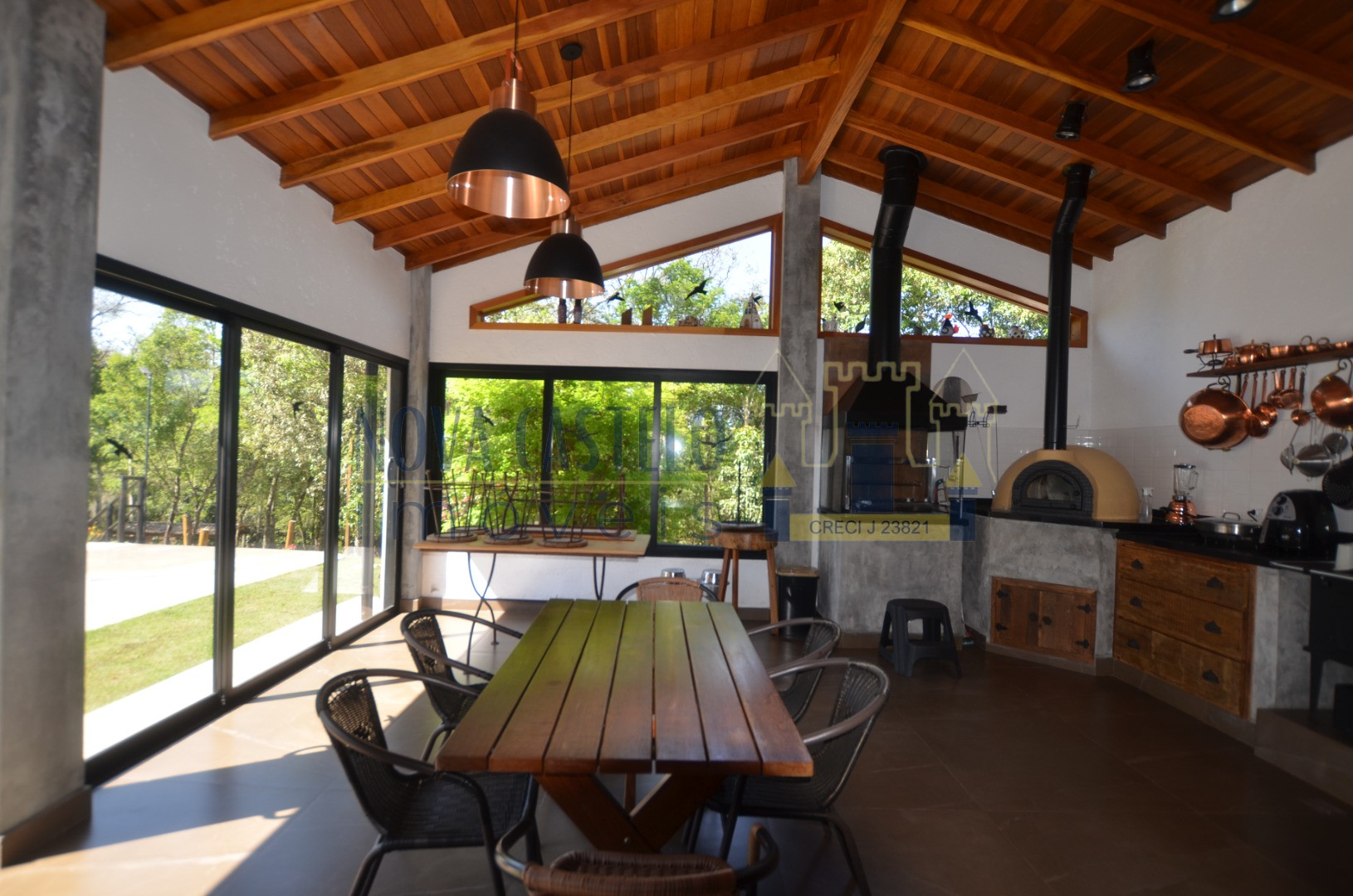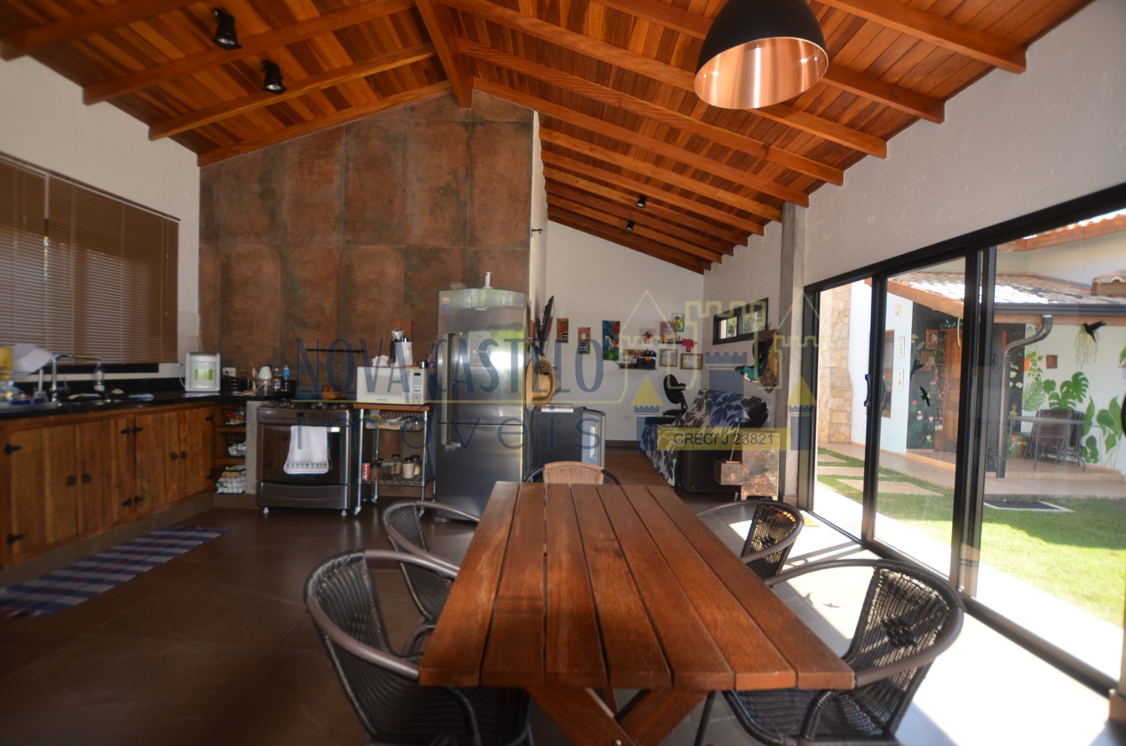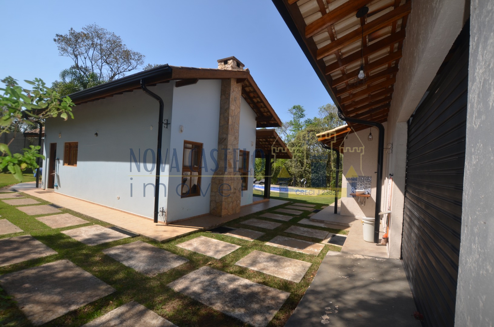 À 85 KM São Paulo, chácara em condomínio com 2.100 m² A/T todo cercado em alambrando, Sede nova aproximadamente com 300 m² A/C  total, com 03 ótimos dormitórios, 02 W.C social, sala 02 ambientes com lareira cozinha, área de serviço, suíte para hóspedes, espaço gourmet completo W.C de apoio 02 W.C, garagem coberta, piscina 3,5 x 7,0 em vinil com deck em porcelanato escovado, fire place, espaço kids, pomar variado, paisagismo maravilhoso, vista cinematográfica.