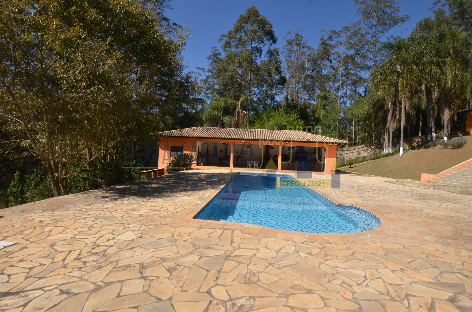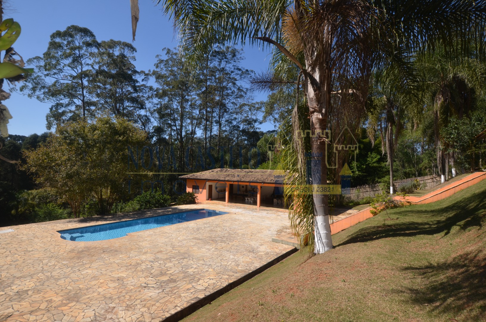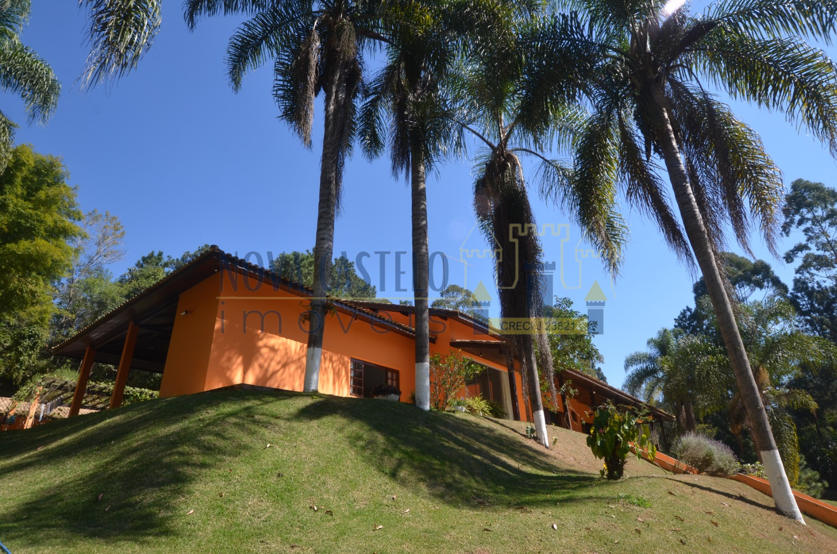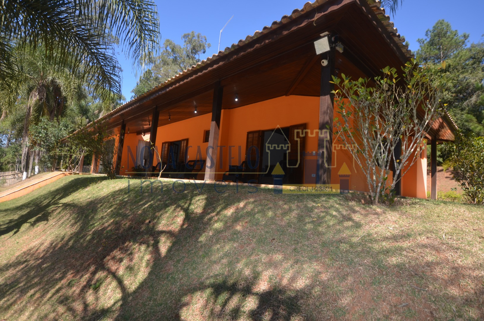 Ibiúna fantastica Chácara em condomínio fechado com 7.000 m2 ótima topografia,todo cercado em alambrado,fundo para área verde do condomínio (lagos e área de lazer completa). Sede maravilhosa com aproximadamente 350 m2 espaçosa, pé direito duplo, sala 3 ambientes com lareira, cozinha planejada,conceito aberto, 3 belas suítes (uma master). Varandão com vista de cinema, área de serviço, lavanderia e despensa, espaço gourmet completo com trio mineiro (fogão a lenha, forno e churrasqueira). Salão de festas, vestiários, academia (espaço para sauna) piscina em vinil e deck em pedra mineira, campo de volley (areia) campo de futebol, pomar, horta e paisagismo ímpar.