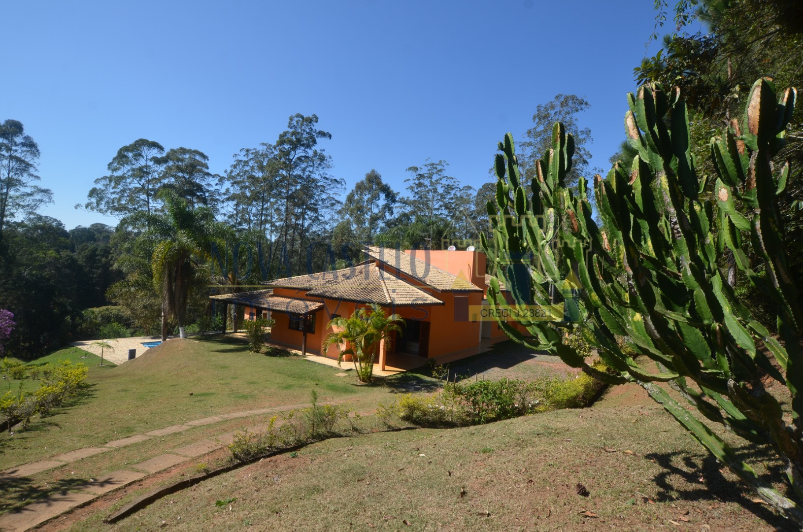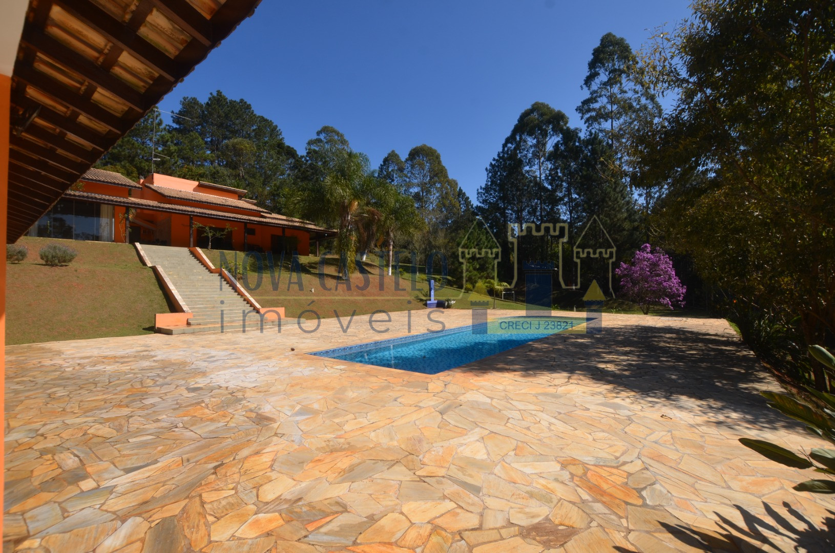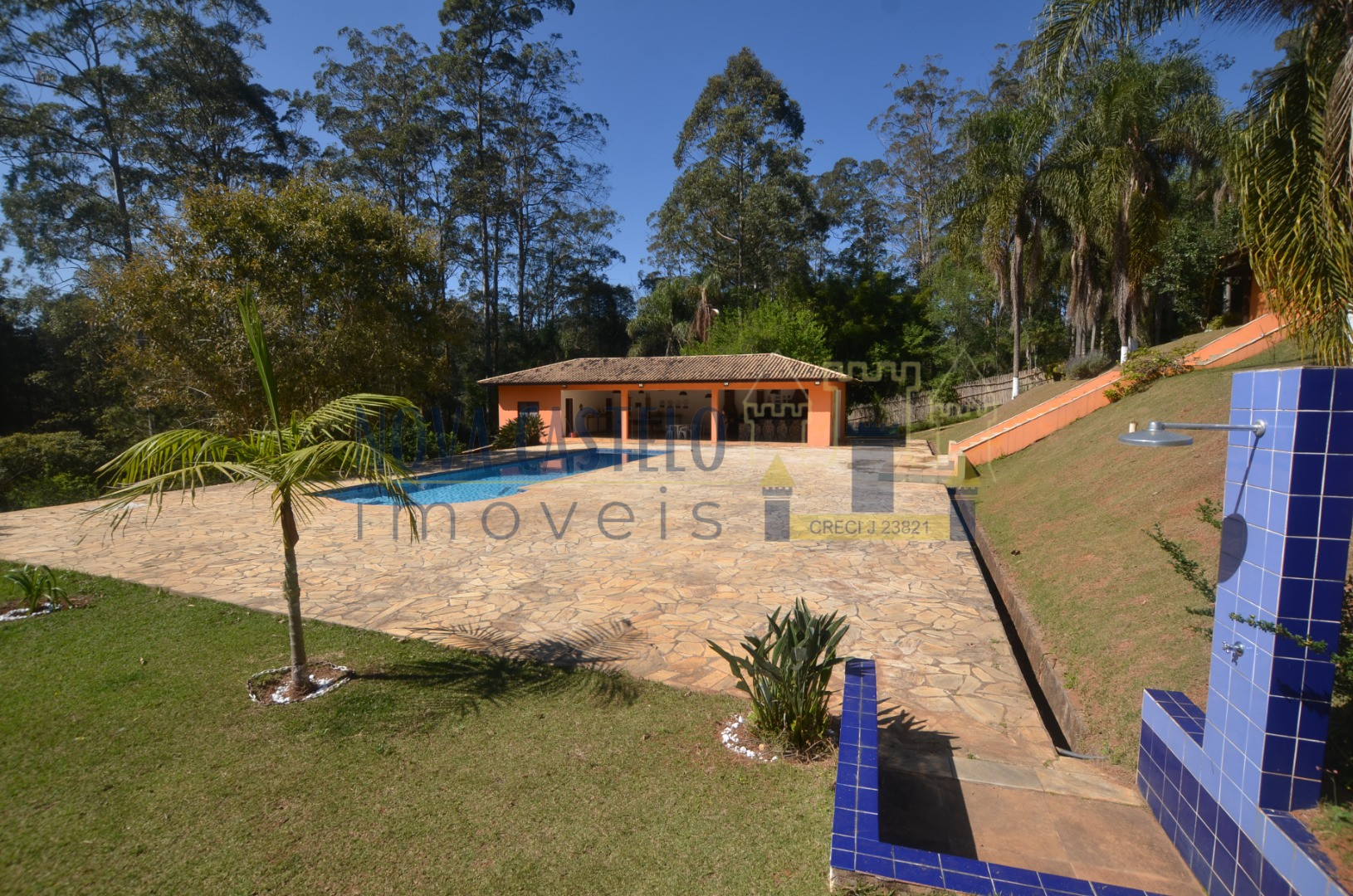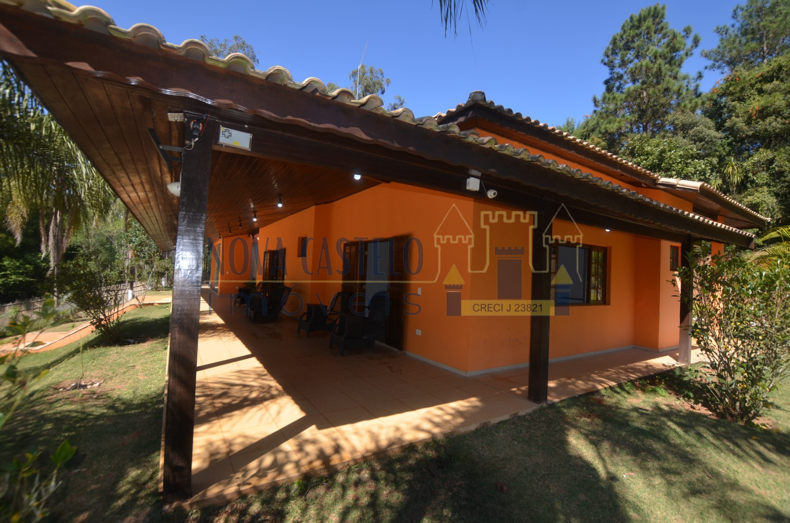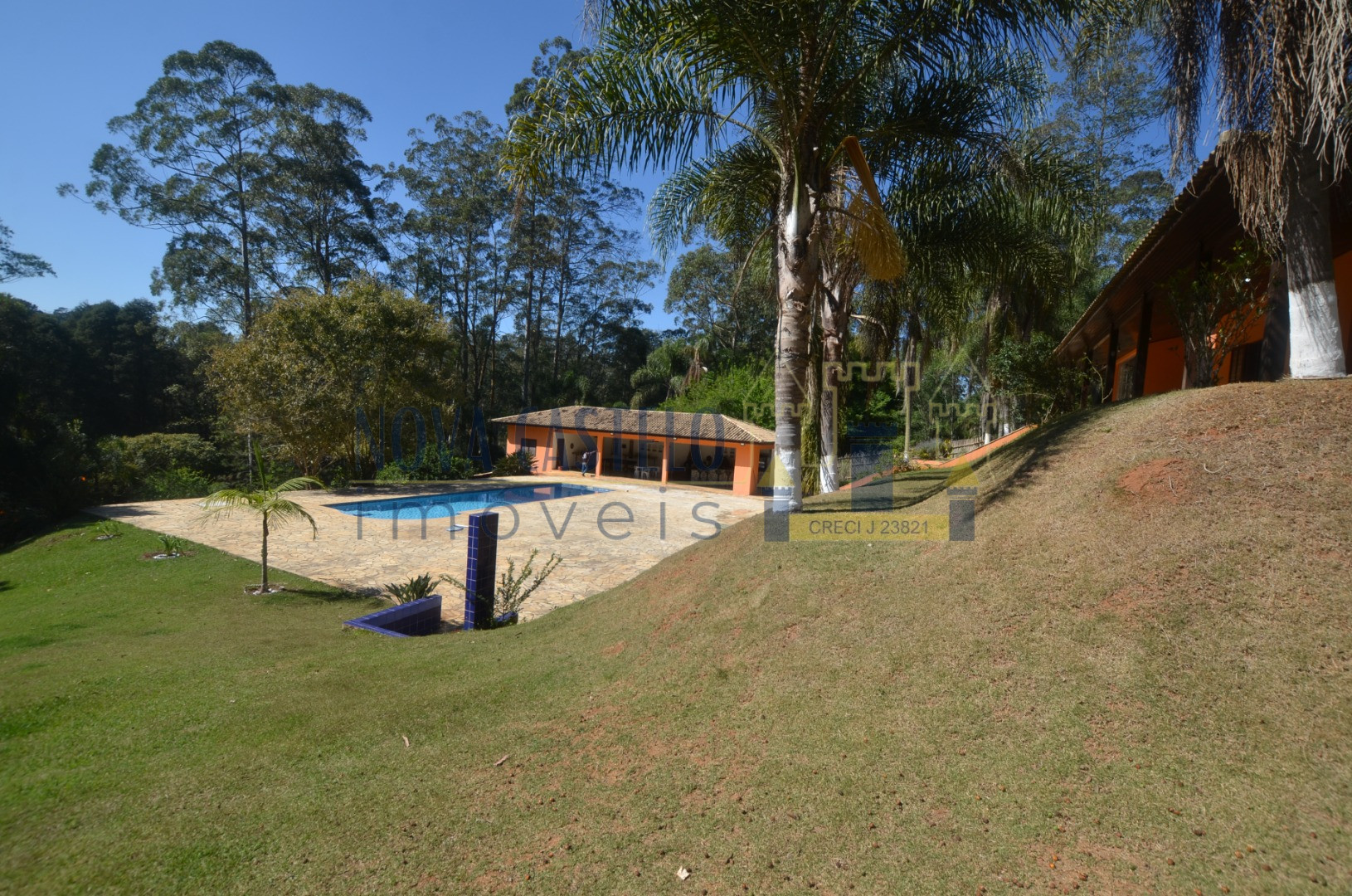 Ibiúna fantastica Chácara em condomínio fechado com 7.000 m2 ótima topografia,todo cercado em alambrado,fundo para área verde do condomínio (lagos e área de lazer completa). Sede maravilhosa com aproximadamente 350 m2 espaçosa, pé direito duplo, sala 3 ambientes com lareira, cozinha planejada,conceito aberto, 3 belas suítes (uma master). Varandão com vista de cinema, área de serviço, lavanderia e despensa, espaço gourmet completo com trio mineiro (fogão a lenha, forno e churrasqueira). Salão de festas, vestiários, academia (espaço para sauna) piscina em vinil e deck em pedra mineira, campo de volley (areia) campo de futebol, pomar, horta e paisagismo ímpar.