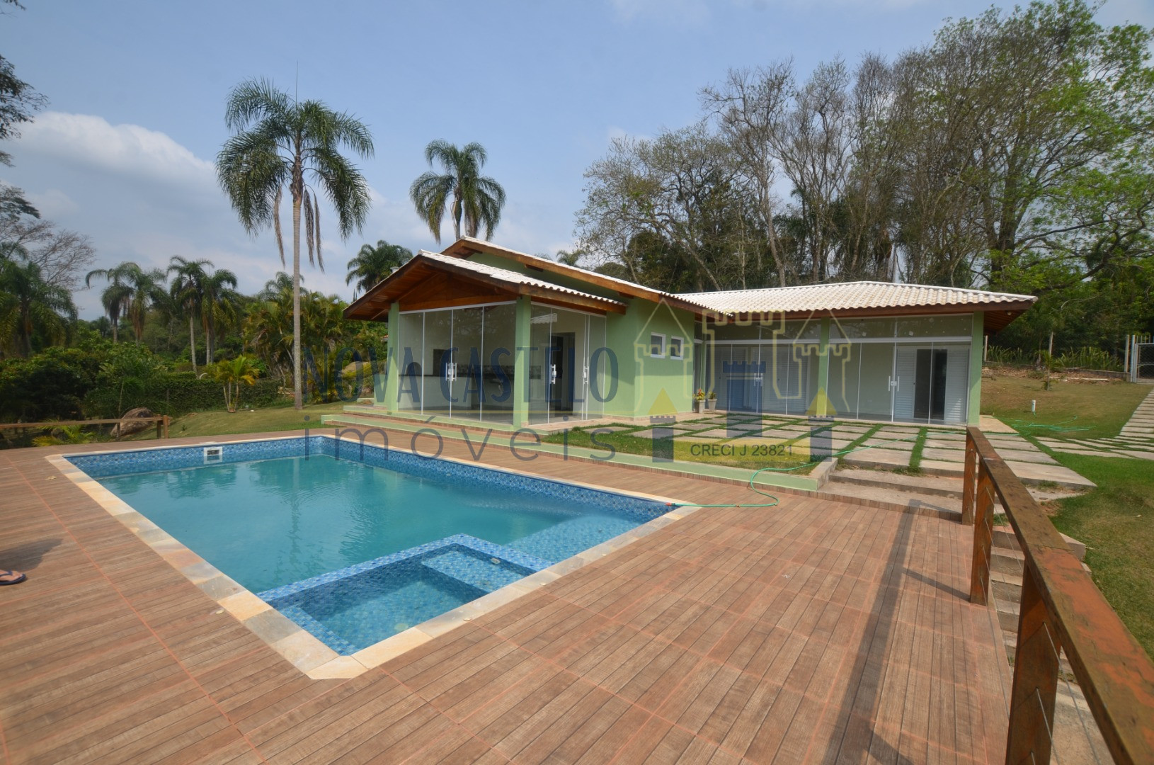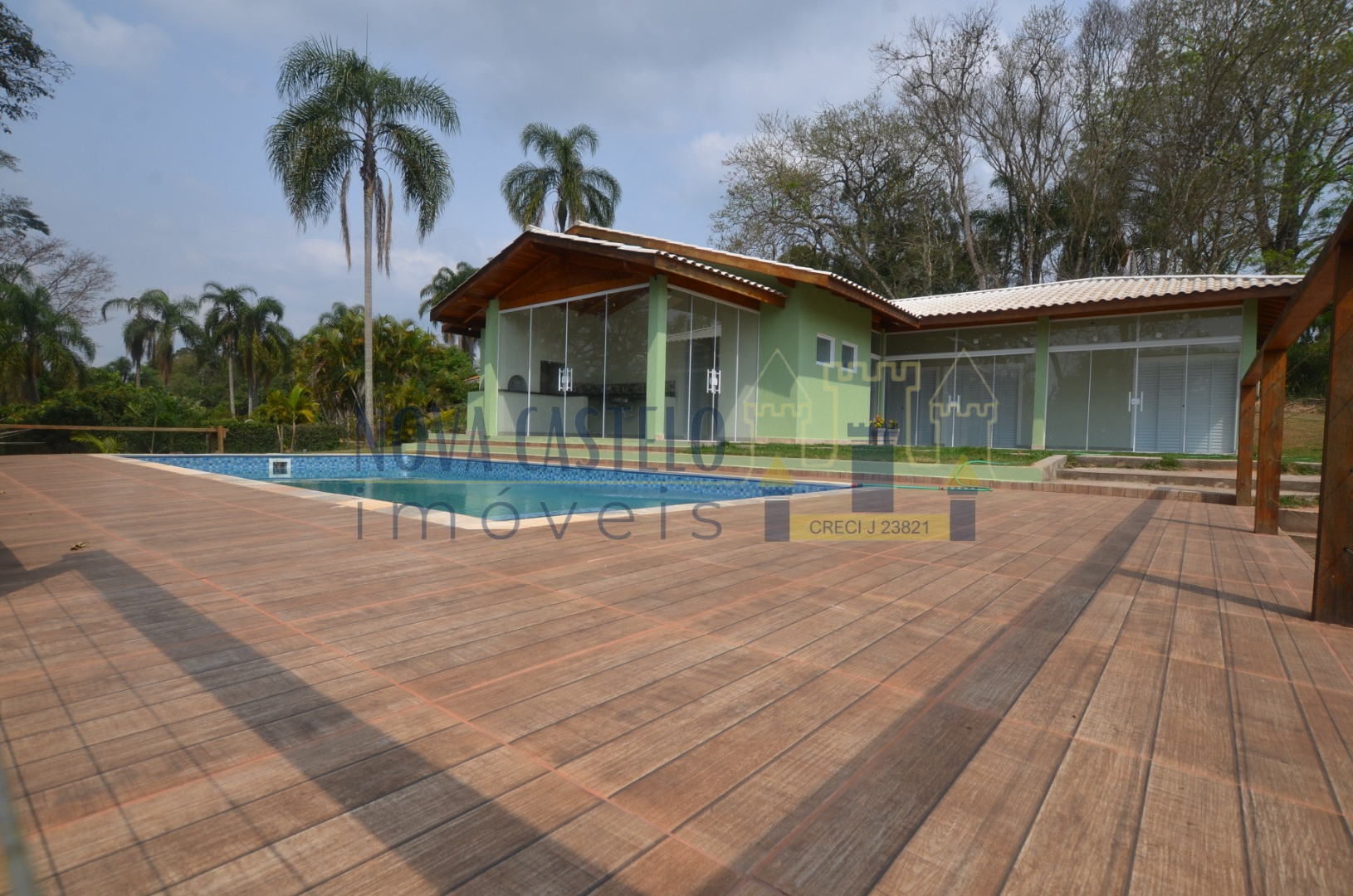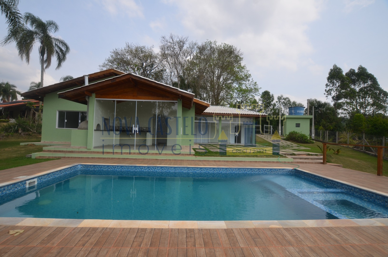 À 85 km SP chácara em condomínio lazer de clube, com 2.500 m² A/T , Ótima topografia Sede nova com aproximadamente 350 m² área construída, planta moderna, Clean e com vista maravilhosa. Detalhe rua tranquila do condomínio com 03 suítes, sala espaçosa 05 ambientes pé-direito duplo, WC social, cozinha conceito aberto (americana) balcão de granito, lavabo, área de serviço, despensa, varandão em Blindex espaço gourmet completo, telhado diferenciado (telhas esmaltadas) piscina vinil 3,5 x 7,0 espaçoso deck em porcelanato anti-derrapante, com prainha Hidro para 04 pessoas pomar e paisagismo. Infra do condomínio: água encanada, clube completo segurança, salão festas/jogos, campo de futebol oficial, mirante, net de fibra ótica, ruas iluminadas, um dos condomínios + completos da Região.