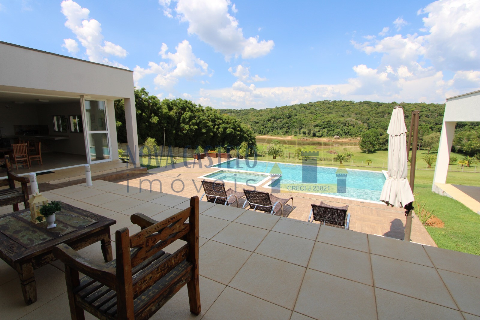 Á 80 Km de São Paulo, local de alto padrão, para pessoas que são apaixonadas por água e esportes náuticos. Lindo terreno com 12.000 m². murado e pura natureza com muito verde, pomar formado 26 pés de jabuticabeiras e outras exóticas, horta, bosque, 10 mil m2 de paisagismo tropical. Sede moderno, pé direito de 5 metros, aproximadamente 650 m² de A/C Clean, espaçosa , fino acabamento sala em 05 ambientes com pé direito alto com muita iluminação natural vista para represa, cozinha americana com ilha e planejada, área de serviço, dispensa, 05 confortáveis suítes com ar-condicionado e varandão. Espaço gourmet com churrasqueira forno de pizza e fogão caipira, piscina borda infinita hidro massagem e amplo deck, vista para represa, salão de jogos, espaço campo de futebol, canil, oficina, casa de caseiro.