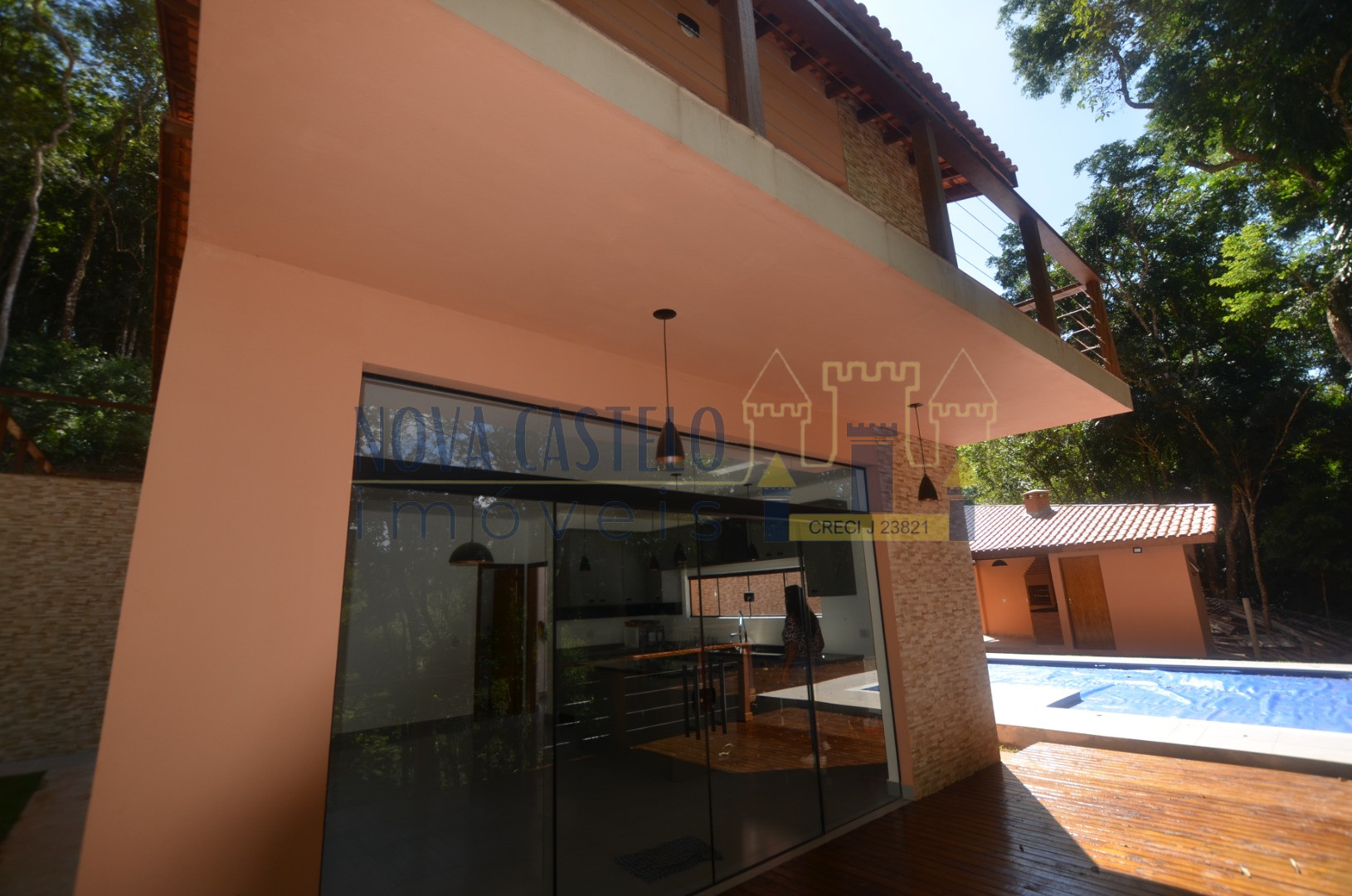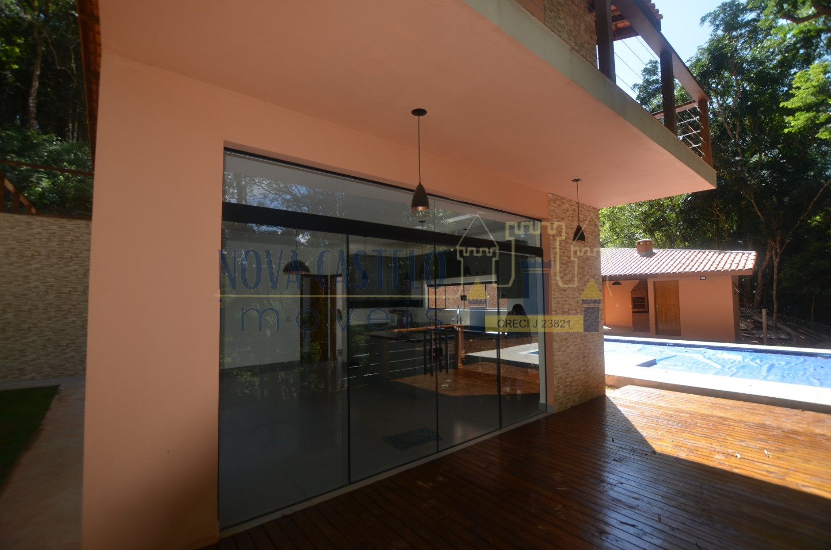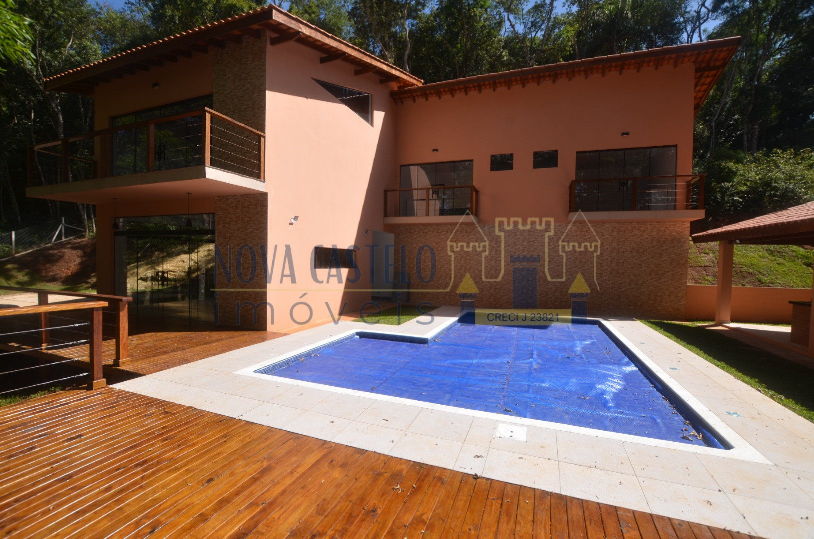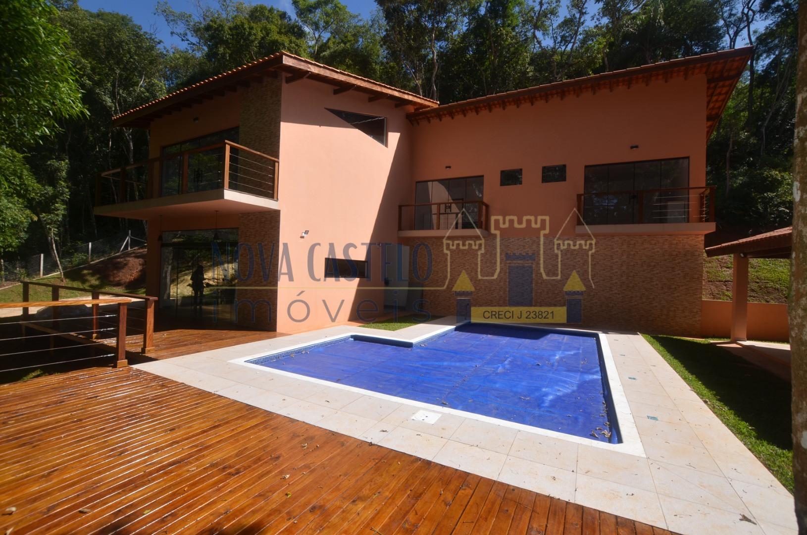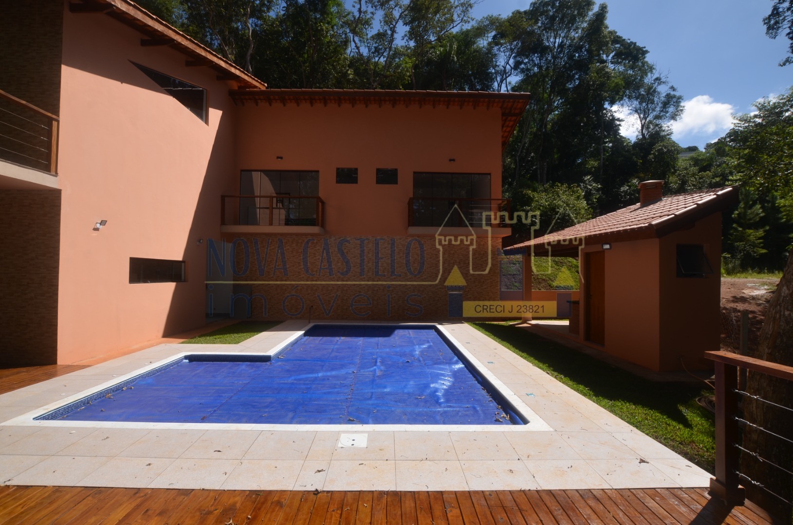 Ibiúna condomínio, Mansão Suspensa com 1.995m2 de terreno tdo cercado em alambrado, aproximadamente 240 m2 de A/C, Sede com 03 ótimas suítes tds com sacada e porta balcão em blindex, cozinha conceito aberto (cozinha americana) sala 03 ambientes, varanda, despensa, espaço gourmet com churrasqueira, piscina em "L" 3,5 x 7,0 com prainha 1,5 x 3,0 em vinil com 02 belos decks grandes em madeira, caixa dágua de 5.000 litros com pressurizador, estacionamento para 8 carros ( descoberta) paisagismo com árvores nativas. OBS: SERÁ ENTREGUE COM PORTEIRA FECHADA, mobiliada e com utensílios de uso, cortinas , eletrodomésticos e etc... INFRA DO CONDOMÍNIO: Clube completo, Net de fibra, água encanada com estação de tratamento do condomínio, clube com piscina semi-olímpica, piscina infantil, churrasqueiras espalhadas pelo bosque, campo de futebol gramado, lagos para pesca esportiva, trilha ecológica e portaria 24h com ronda motorizada.