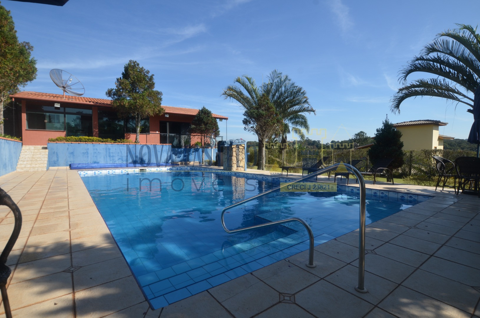 Á 80 km de SP Belíssima Chácara em condomínio com 2.000M2 de A/T, ótima topografia,todo crcado e alambrado e paroximadamente 400 M2 de A/C , SEDE com 5 dormitorios (3 suítes) e mais 02 (duas) suítes para hóspedes. sala 03 ambientes com pé direito duplo, cozinha ampla com planejados, wc social, lareira,avarandada, piscina maravilhosa medindo 8,0 x 16,00 em alvenaria e belo deck em pedra mineira, espaçogourmet completo com churrasqueira, forno de pizza e fogrão a lenha espaço para campo de futebol / volley pomare paisagismo. INFRA DO CONDOMÍNIO:Net de fibra Óptica, água Sabesp, portaria 24 hrs, ronda motorizada, trilhas ecológicas, 04 lagos para pesca esportiva, campo society (areia), churrasqueira.