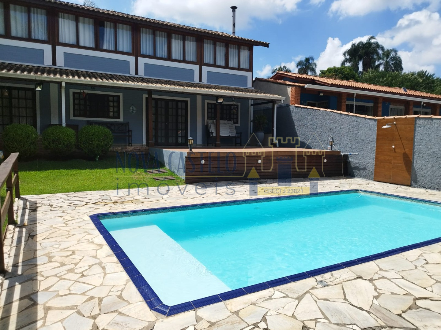 À 1 hora de SP. Codomínio de Alto Padrão com 1.000M2 A/T ótima topografia e aproximadamente com 240 A/C total, construção de fino trato. Sede clean, rica em iluminação natural, sendo 03 excelentes dormitórios (01 suíte. Wc social, sala 03 ambientes , Lareira, cozinha conceito aberto ( americana). Varandão com vista de cinema. Salão de festas / jogos,piscina em vinil medindo 3,5 x 7,0 com Led e cascata, deck em pedra mineira, Espaço gourmet com trio mineiro. Estacionamento com mais de 6 vagas descobertas, belíssimo paisagimo INFRA Do CONDOMÌNIO: Ruas Pavimentadas, área de lazer com quiosque, churrasqueiras, campo society, trilhas ecológicas. Água da Sabesp, net de fibra óptica,portaria e ronda motorizada 24 horas. OBS: Aceita apto no Gurarujá (praia do Tombo, Asturias, Enseada e pitangueiras)