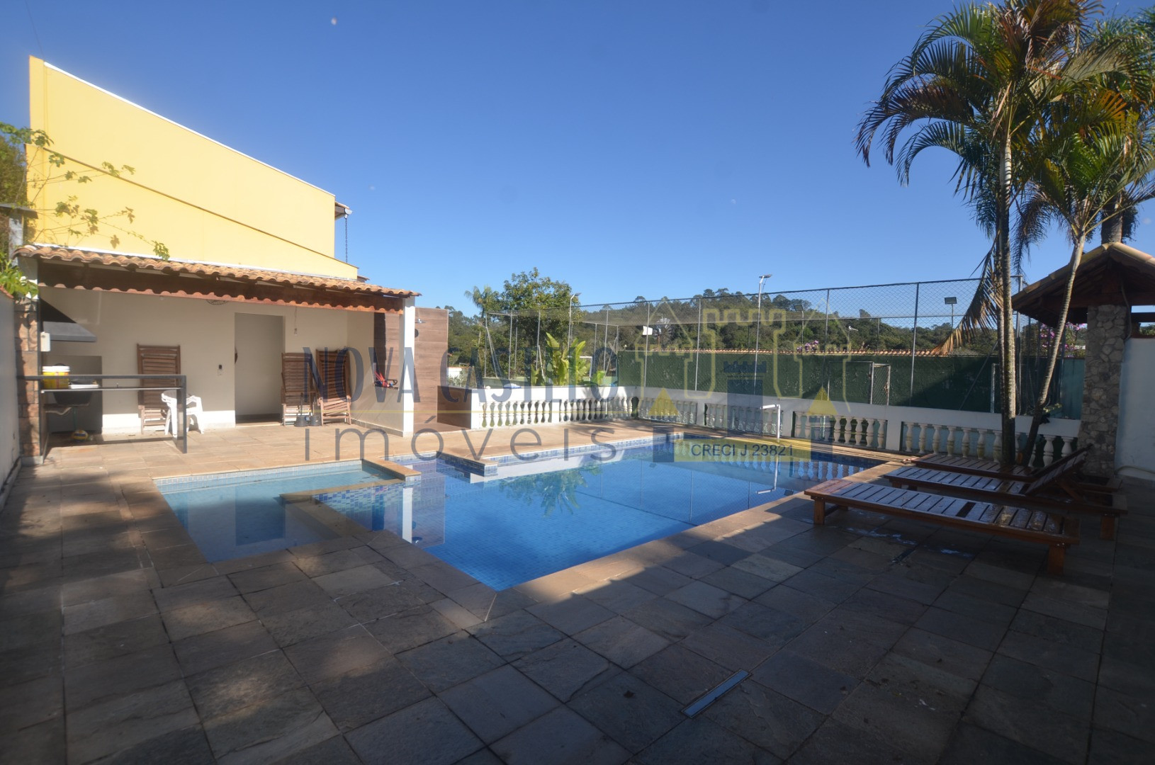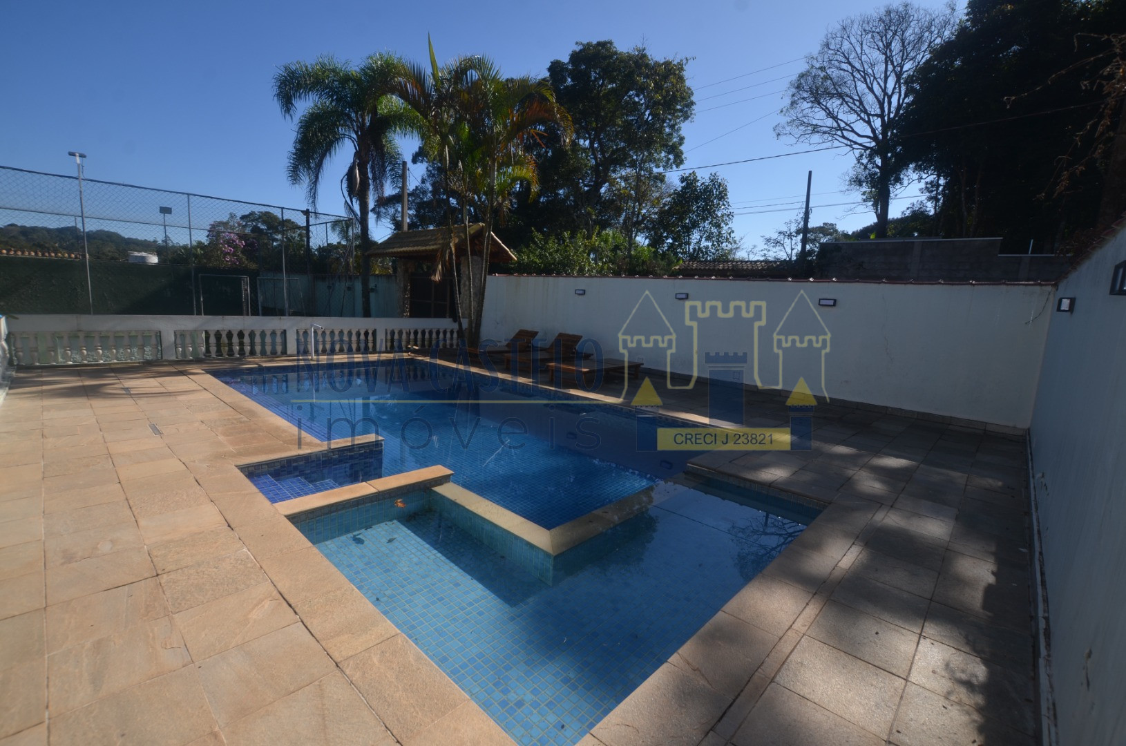 À 1 hora de SP, com 1000 M2 A/T, murado, Sede aproximadamente com 500M2 A/C com 04  ótimas suítes,todas com porta balcão,sala e cozinha com palnejados, wc social,espaço gourmet completo com churrasqueiras, forno de pizza e fogão a lenha, salão de festas? jogos2 vestiários mas/fem. pisscina em vinil com prainha e hidro com belo deck em porcelato escovado, campo de futebol gramado e alambrado, fogo de chão e paisagismo completo