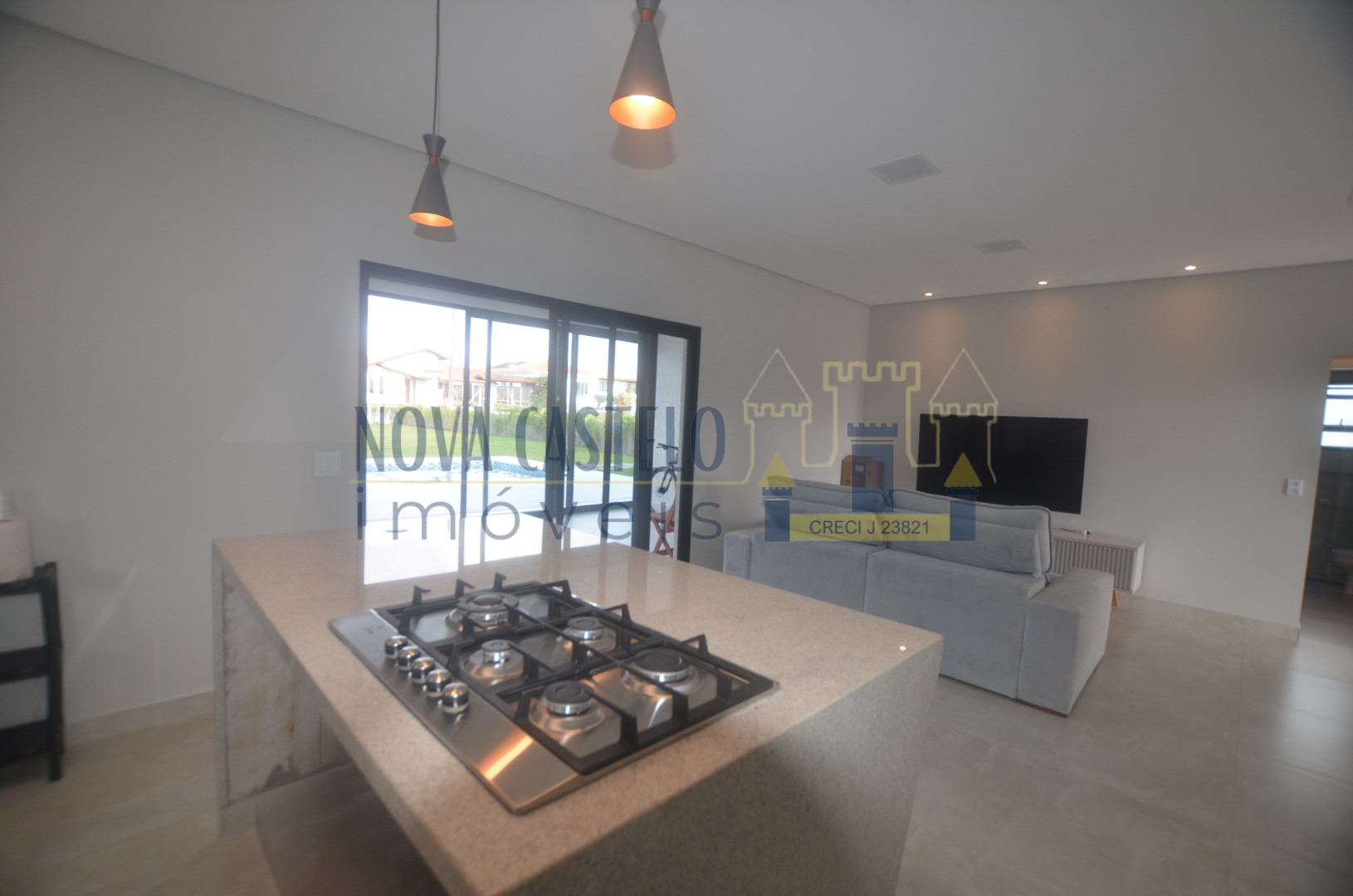 Cozinha conceito aberto com ilha